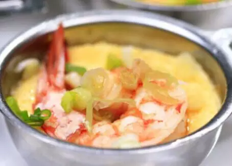 鸡蛋羹蒸出来很香,我点上蒸鱼豉油,吃到嘴里软嫩多汁,鲜虾的汤汁让鸡蛋羹更为鲜香。