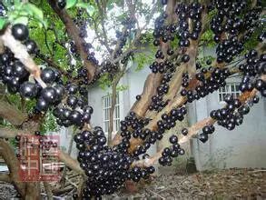 嘉宝果,又名珍宝果(Plinia cauliflora (Mart.) Kausel)属于桃金娘科常绿灌木,因果实形状似葡萄,故称树葡萄,此外它还有个好听的英文名:Jaboticaba。其成长缓慢,树皮浅灰色,呈薄片状脱落,脱落后留下亮色斑纹。叶对生,叶柄短,有茸毛,叶片革质,深绿色有光泽,披针形或椭圆形。其花簇生于主干和主枝上,有时也长在新枝上,花小,白色,雄蕊多数,顶着淡黄色的小花粉,散发出阵阵清香。