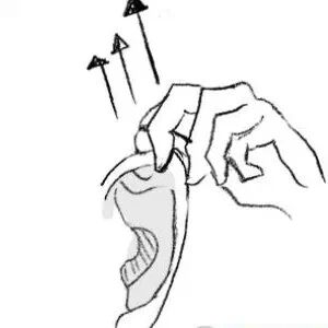 两手分别轻捏双耳的耳垂,再搓摩至发红发热。然后揪住耳垂往下拉,再放手让耳垂弹回。