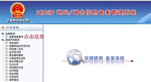 2.点击“欢迎访问工业和信息化部ICP/IP地址/域名信息备案管理系统"