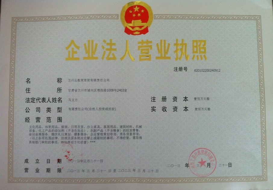 各地工商局发的营业执照和工信部发的许可证