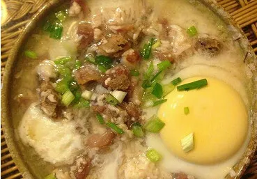 1)鸡蛋+少许盐打散,加入适量清水,溶化的猪油拌均水拌均匀。