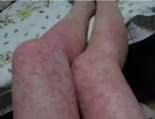 穿过后,妹纸两条大腿开始出现严重皮炎!遍布密密麻麻的红斑!