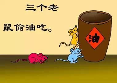 老鼠掉进了油瓶里,意外的收获让他乐不思蜀。确定没有危险后,他一顿猛吃,吃饱了就睡,睡醒了就吃。终于有一天,油被吃完了,老鼠却再也爬不到瓶口了。