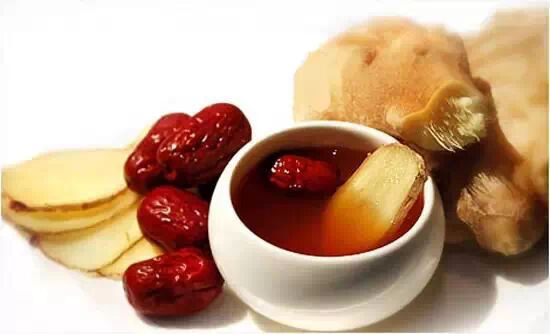 生姜、红糖茶:生姜30克,红糖适量,水500亳升,煎服,每日1剂连服5天。