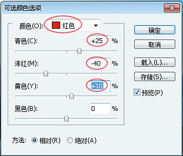 图4:调整红色、橙色、黄色的色相为-80、-20、-70;点击右下角的“打开图像”,使照片在Photoshop的处理界面中打开。