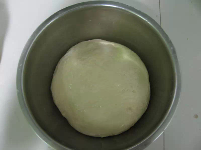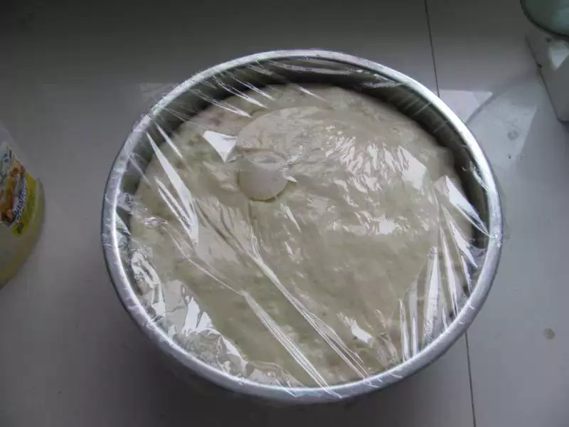 待面和的差不多了,用手蘸油把面揉好,就这样,用保鲜膜盖好,等待发酵