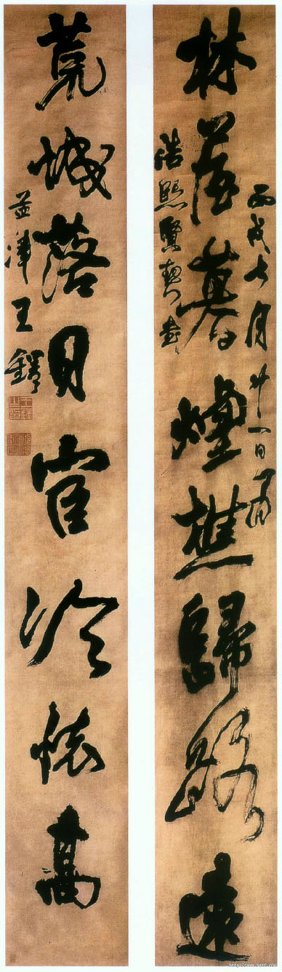 王铎 1646年 为浩熙贤契书八言联 行书 绫本 304X39cm上海朵云轩藏 【以上资料由廉卿草堂书画空间1164629725 .qzone.qq.com整理编辑,欢迎转载学习!】谢谢欣赏 ,欢迎转发! |