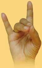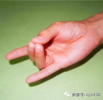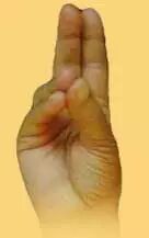 大拇指、小拇指、无名指相加,其他两指自然伸展。可增强人的活力。