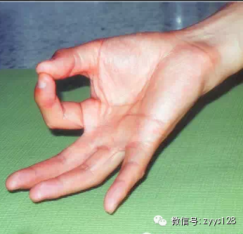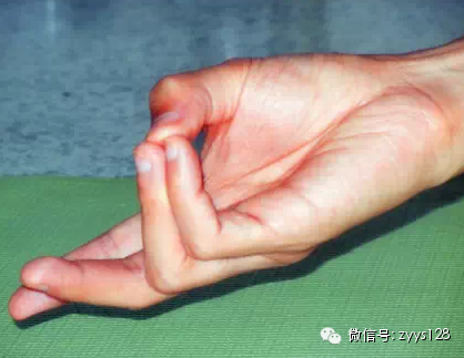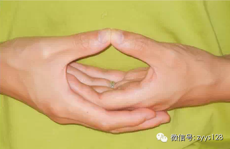 练习方法:用每只手将拇指、中指、无名指捏在一起,伸展其他手指。需要时,做5至45分钟,或一天三次,(每次)15分钟,作为一个疗程。