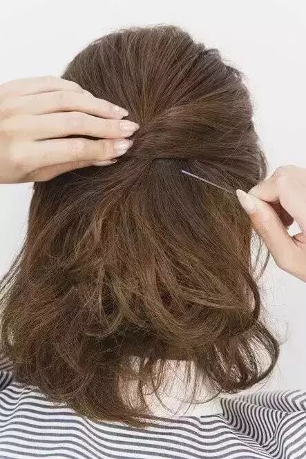 刚上述的步骤一样,只是这次将头发扭转的幅度更大,尽量卷到最底