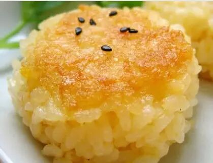 3、平底锅倒入适量油,放入饭团,再煎至焦黄就可以了
