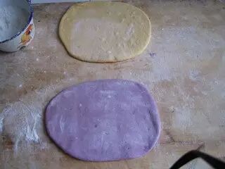 10.发酵好的面团分别取两块,擀成两张面饼
