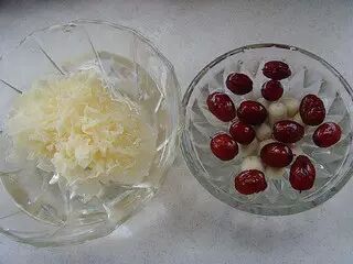 2.银耳,红枣,莲子在冷水中浸泡至发