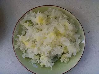 3.银耳去蒂,撕成碎朵,莲子去芯,红枣去蒂部和红枝待用