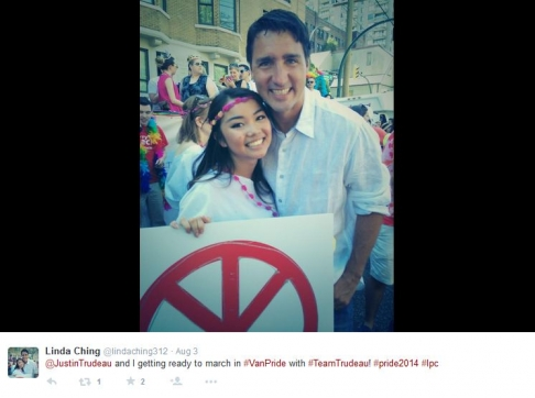 2014年程颂莲与自由党议员Justin Trudeau合影。