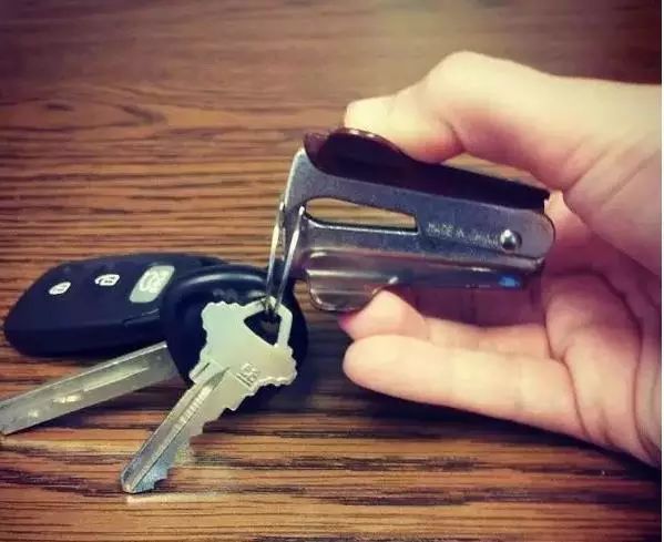 硬要用指甲扳开钥匙圈总是会让手指很痛,你可以使用除针器,将钥匙圈夹开,然后放入新的钥匙到你的钥匙圈里头。