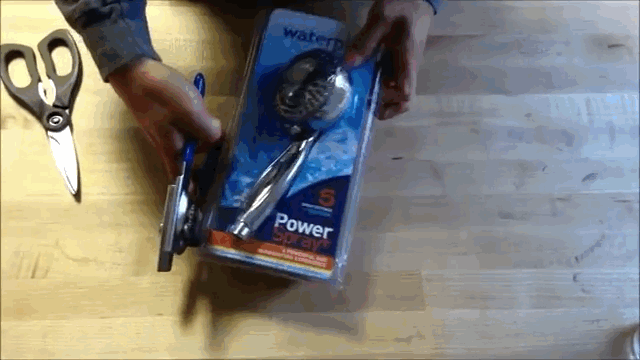 用刀面夹住包装的一侧,然后向下切割。比剪刀还要有效呢!