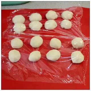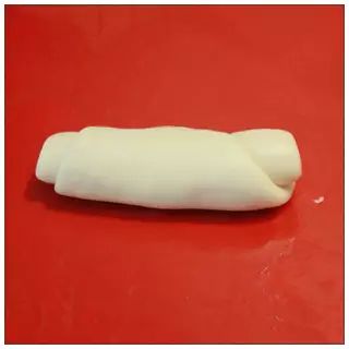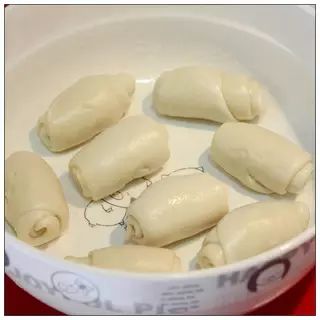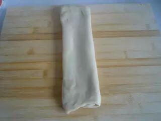 14、再次卷起,每份都做好,然后再蒙上保鲜膜松驰15分钟。