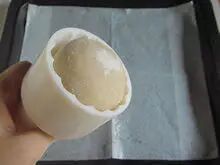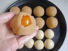 6、咸蛋黄用食用油浸泡一到两小时,这样可以去腥。(浸泡好的蛋黄在制作前最好用厨房纸吸去表面的油份)