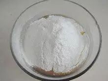 14、月饼模具里撒一些面粉,用手掌压住模具口,晃动几下,使面粉均匀的撒在模具里,然后倒出多余的面粉,再把月饼胚放入模具里。