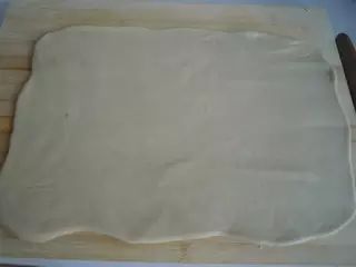 6、把揉好的面团用擀面杖擀成长方形面片。