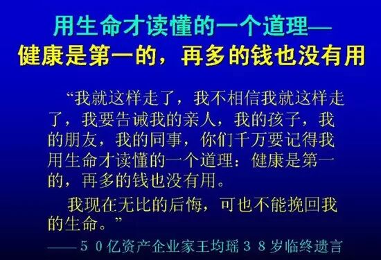 没了健康,其他的诸如:财富、名誉、地位、面子、奢华、小三、豪车、名宅……都是浮云!