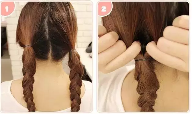 将辫子从洞中穿过去,不要全部拉到底,留一点形成小球