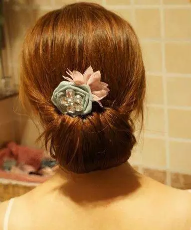 在头顶绑个马尾,不要全部拉出来,形成一个球状