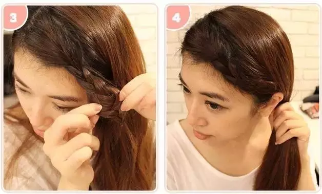 将辫子右边的往左边绕,左边的往右边绕,绕紧之后用小黑夹收好