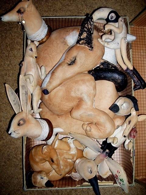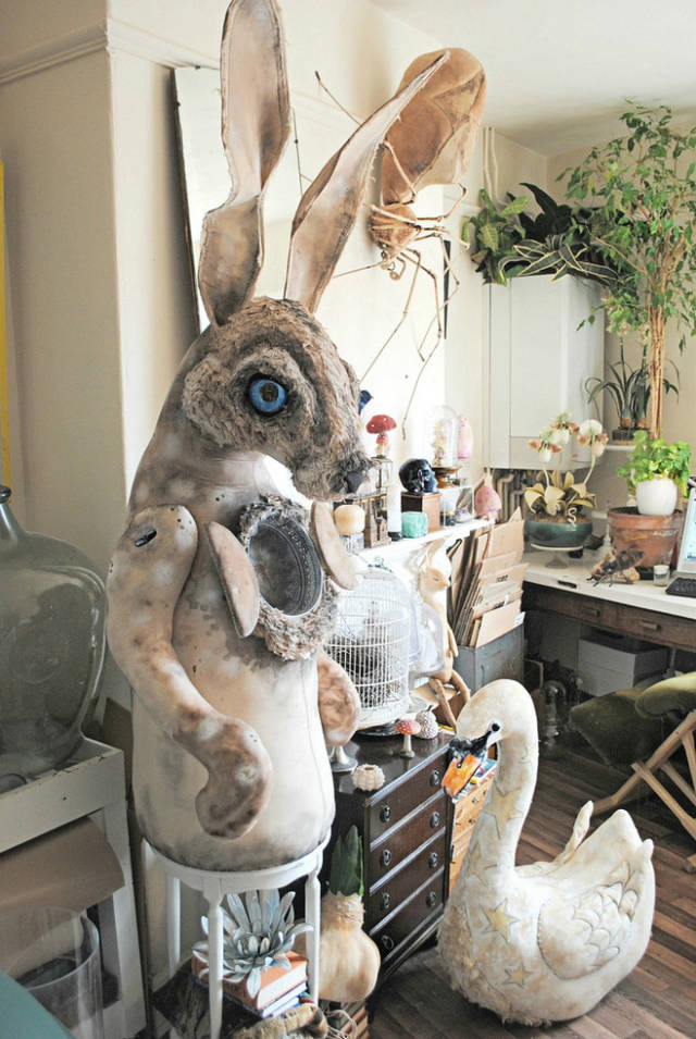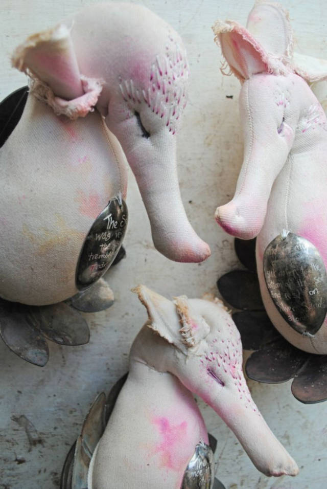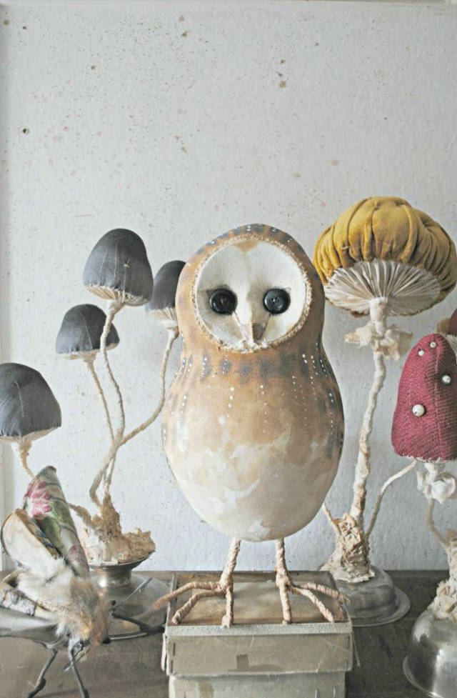 几块老布、针线、纸张、玻璃瓶、书本还有一只猫,这几乎就是Mister Finch工作室中的所有对象,很难想象是什么样的情绪才能制作出如此诡异却又带着温馨和童话风格的作品,作者表示因为自己本身就非常喜欢花朵、昆虫和鸟类,和缝制的活动。