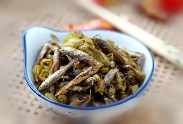 火焙鱼100g、油、盐、大蒜子、酸豆角、酸辣椒、豆豉