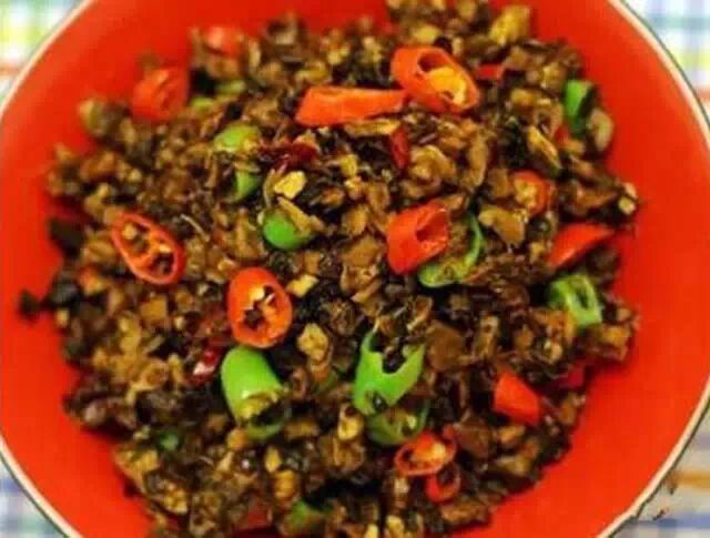 外婆菜是湖南湘西地区一道家常菜,原料选用多种野菜、湘西土菜,以湘西传统的民间制作方法晒干放入坛内腌制而成,不添加任何色素和防腐剂,加上肉泥、辣椒、植物油、食盐等,是难得一见的时尚湘菜,口感极好,嚼之有劲,品之逾香,具有开胃下饭,降血脂、软化血管、滋养容颜的功效。