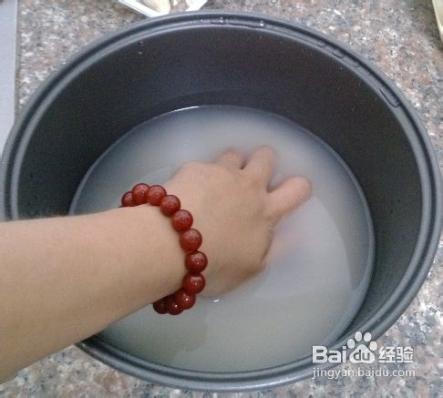 把米在冷水里浸泡一个小时。这样可以让米粒充分的吸收水分,蒸出来的米饭就会粒粒饱满。