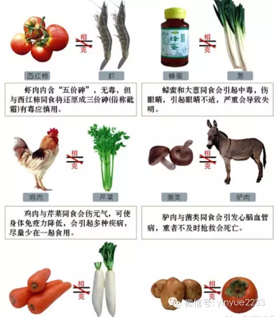 胡萝卜白萝卜相互冲,蕃茄黄瓜不能一起食;