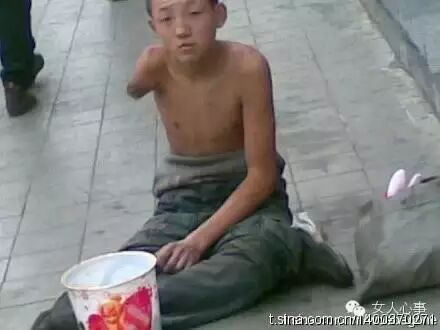 更令人发指的是,他们中有的被贩卖给了职业乞讨团伙,被人为的扭断腿脚,浇上硫酸,药成哑巴,整日被迫上街乞讨挣钱。