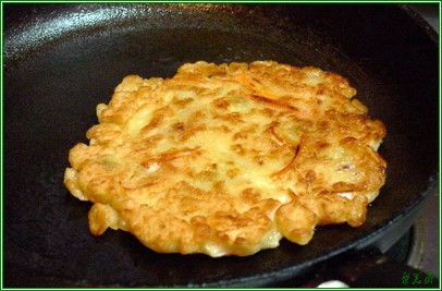 --放油烧热,再放饼下去煎,煎成金黄就可以吃啦!