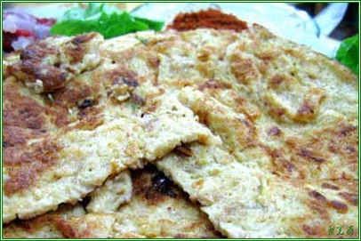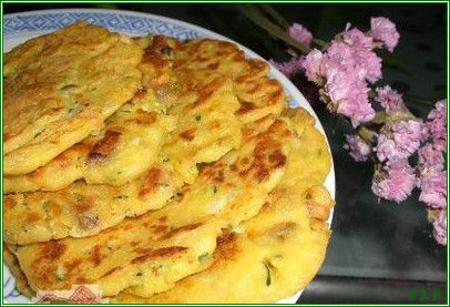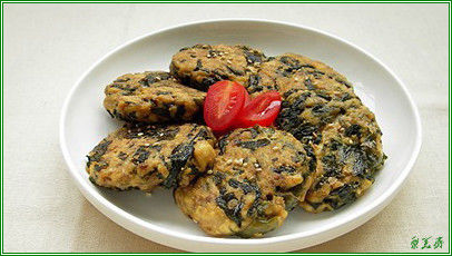 豌豆饼的做法并不复杂,糯米份,盐和新鲜洗净切碎的豌豆嫩芽混合,加水,搅拌均匀至豌豆芽和糯米粉我中有你你中有我,然后搓成一小团,合在手心再揉揉压成扁平状。等铁锅里油半热的时候,将饼放进去,慢慢的,油滋滋的在豌豆饼上冒泡泡,然后青白的面孔就变成黄绿色的脸面了。豌豆饼最宜刚出锅就吃,咸香清鲜,外硬内软,有着江南春天泥土的气息。