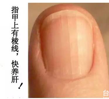 1.指甲表面有凸起的棱线,或是向下凹陷。中医认为"肝主筋",指甲是"筋"的一部分,所以毒素在肝脏蓄积时,指甲上会有明显的信号