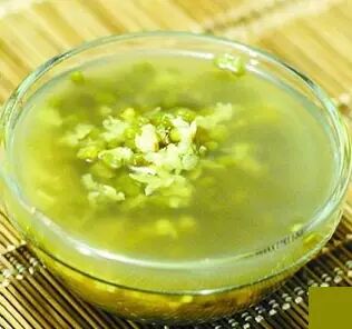 绿豆30克,芦根10克,白茅根10克,将芦根、白茅根用纱布包好,加水适量于绿豆同煮至熟。去药包。冷、热饮均可。2