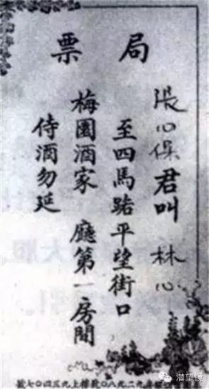 ▲局票:客人邀请“青楼女”陪座喝酒、看戏,称之为局,需开出局票通知这些女人。