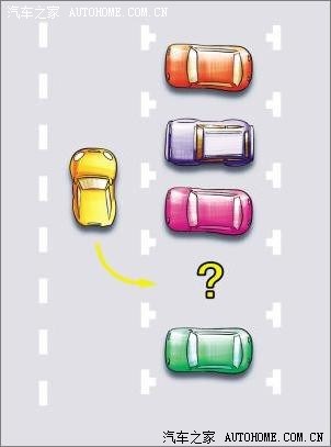 保持自己的车与前车间距60厘米左右并调到平齐位置