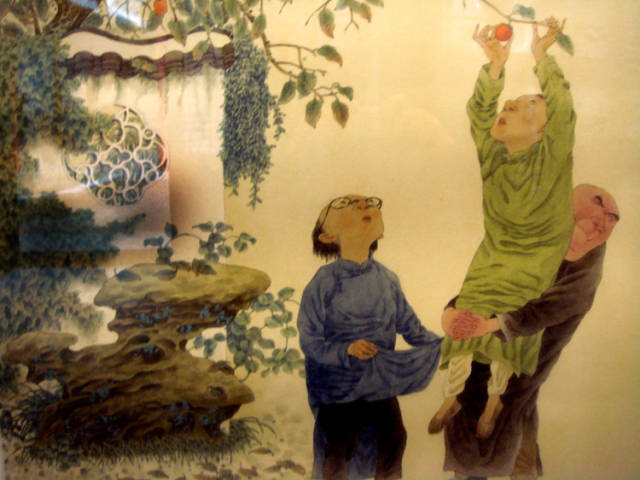 特别喜欢那个孩子多的,听爸爸在讲故事的。现在这样的画面可不多了,谁家还有这么多的孩子呀!