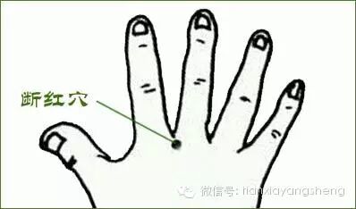 断紅穴位於手背第二、三掌骨间,即八邪中的上都穴位,針之可使经气相通,针感上行至肩,使经气通畅而升提之。灸之能补气固脫,顺经气而能固,经气固則血止,故治疗崩漏,可获滿意的止血效果。