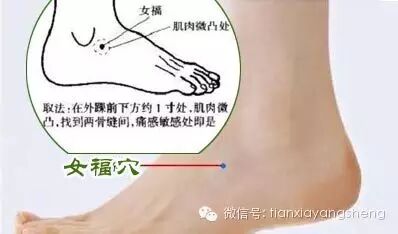该穴止痛效果强,十分钟内解除产妇宫缩痛,及其效验。可治妇女痛经病、宫缩痛、接扎手术后遗症、上环后不适等等。该穴还有强壮腰腿功能,对腰椎病与瘫痪病有配合医疗作用。对男性疾病如前列腺炎等也有疗效。所以每天花一点时间按两脚女福穴六百下左右,不论男女都能有奇效。