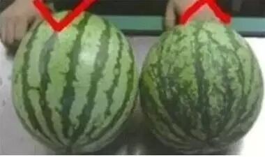4西瓜头,就是所谓的蒂头,若是直直的一条线,就不要,但若是卷曲圈起来的,就很甜。