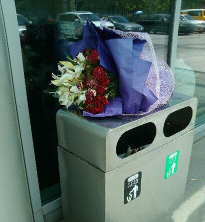 3、 看到路旁垃圾桶上的鲜花,我笑了,又一个悲情的人被拒绝了!