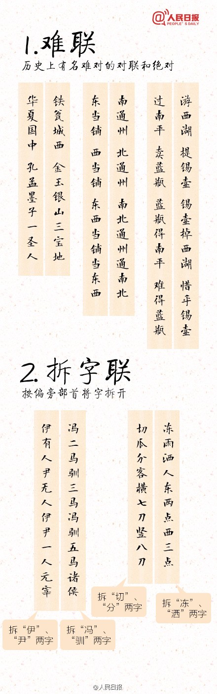 难联、缺字联、戏答联、无情联……这些机智的千年绝对,你能看懂几条?戳图,一起感受中国博大精深的对联文化。