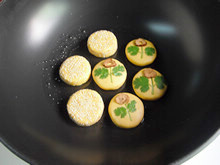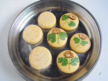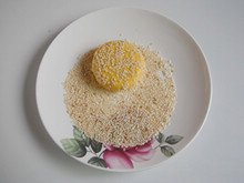 12:把南瓜饼裹上一层熟的白芝麻。