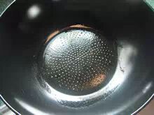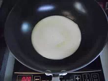 7:平底锅开小火,稍稍预热,抹一层薄油。